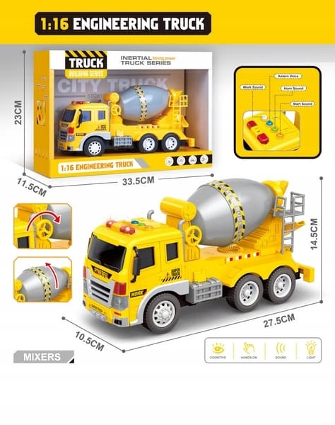 car mixers не может отсутствовать в какой -либо строительстве. Вот почему торопие для строительства! После нажатия кнопок, он издает звуки и сияет.