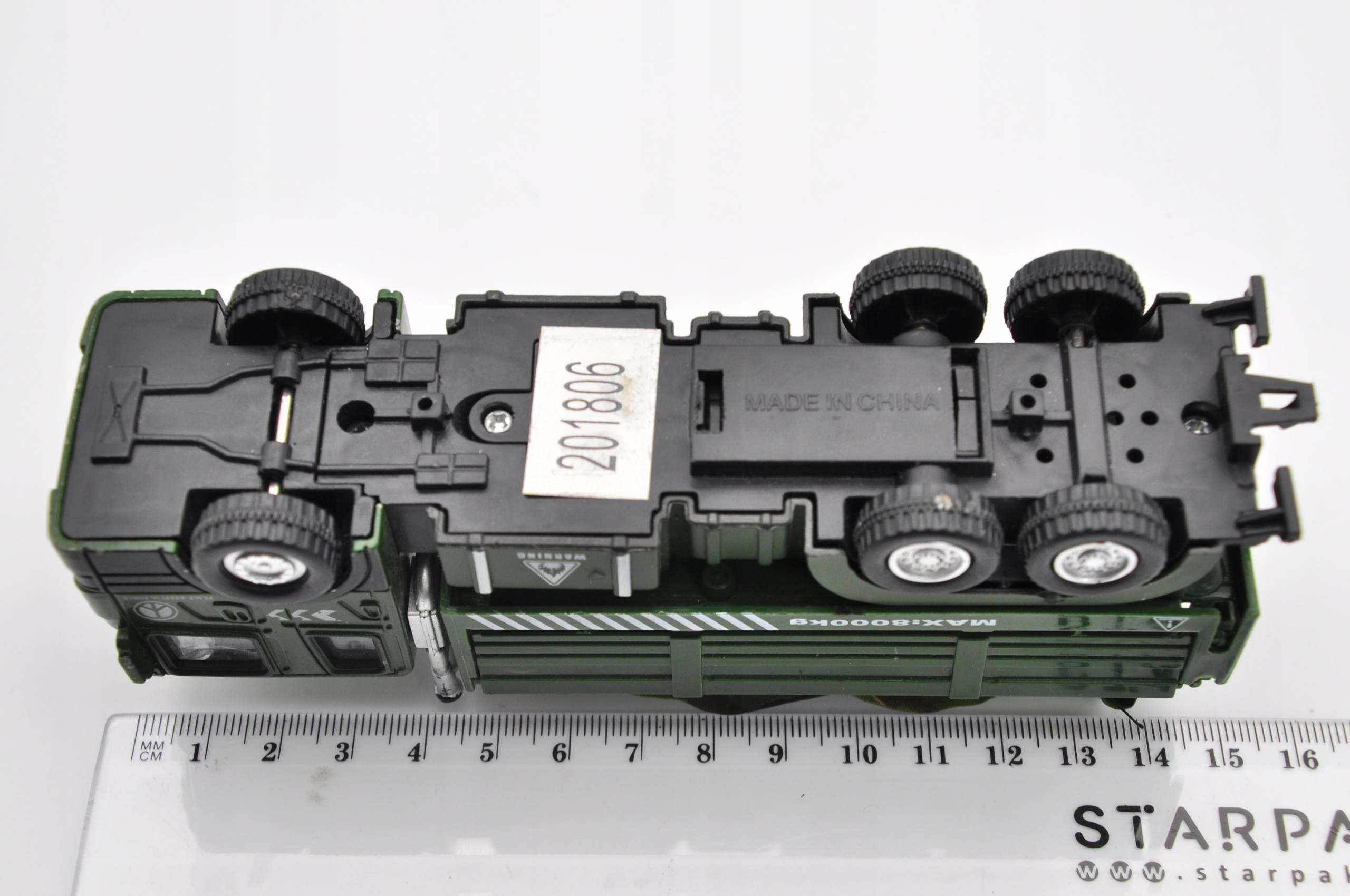 • Модель: Грузовик с силой миротворства (грузовик) • Шкала: 1:64 • Условие: используется • Материал: металл + пластик • Длина (мм): ок. 100 мм • Цвета: зеленый с камуфляжем • Дополнения: охват камуфляжа, реалистичные детали • Номер каталога: 8000K • Сделано в: Китай