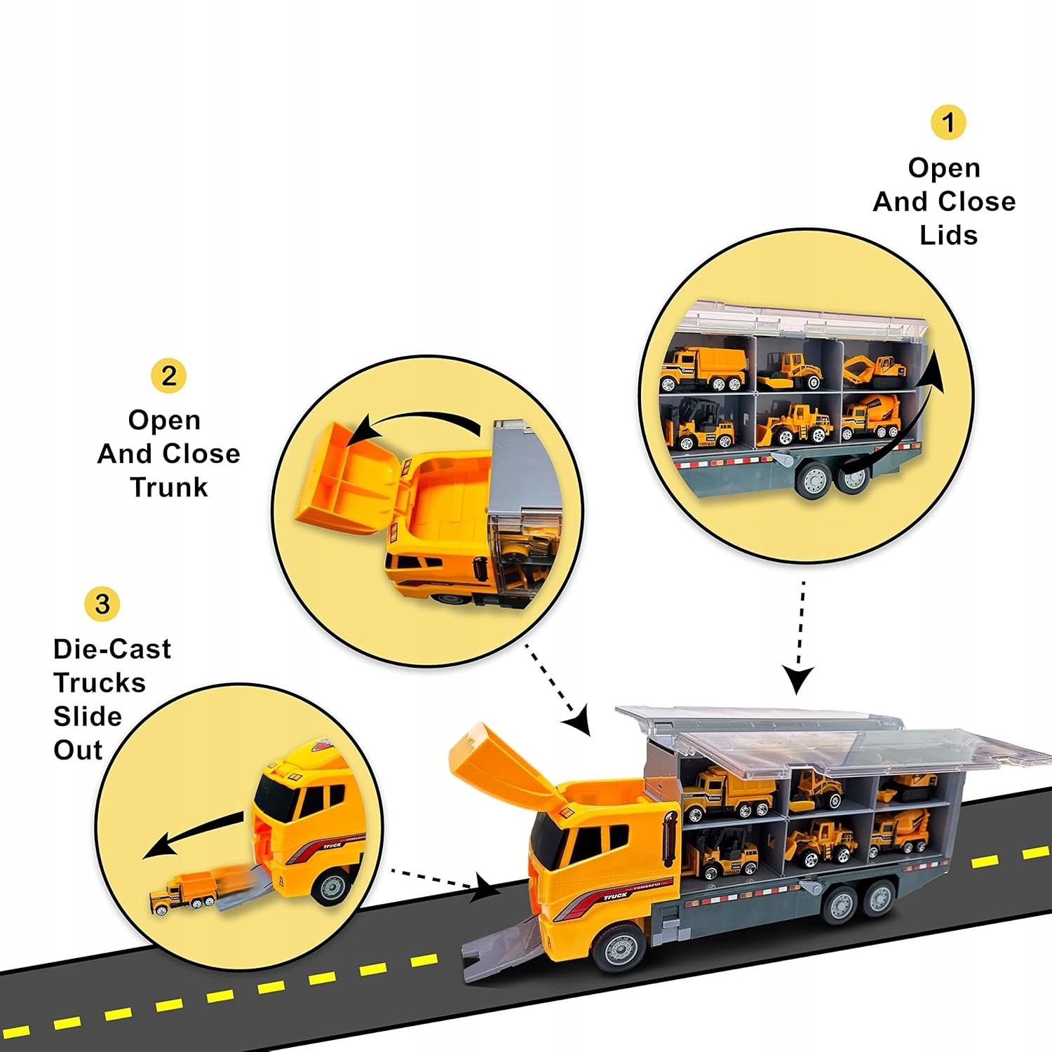 🔴 Когда они не используются, эти строительные грузовики могут быть безопасно и аккуратно храниться в транспортном грузовике, это идеальное решение при путешествии или для поддержания чистоты дома.