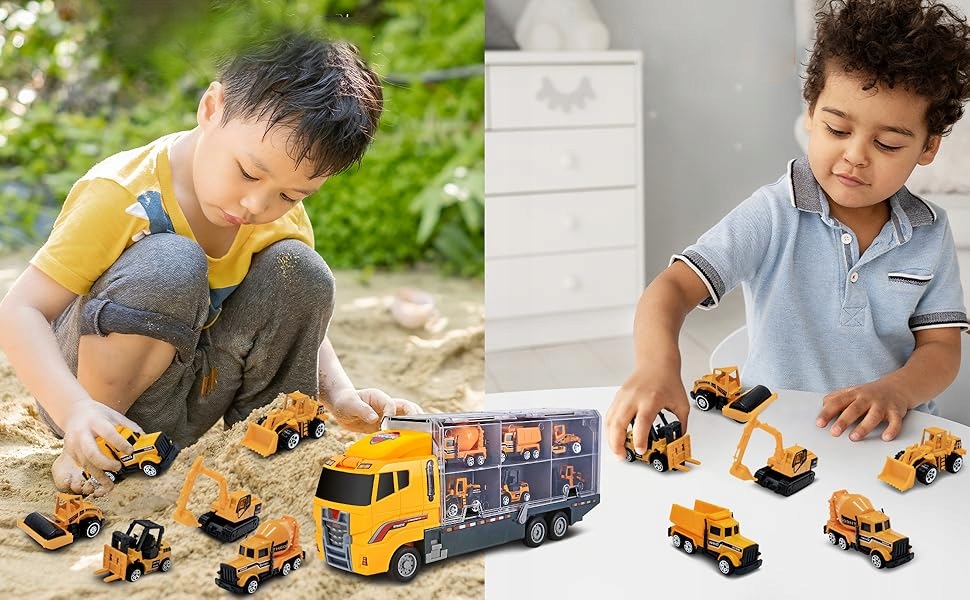 🔵 мини -размер специально предназначен для небольших рук ребенка. Каждый строительный автомобиль достаточно маленький, чтобы положить его в карман, легко носить. Портативная и забавная строительная игрушка для мальчиков и девочек.