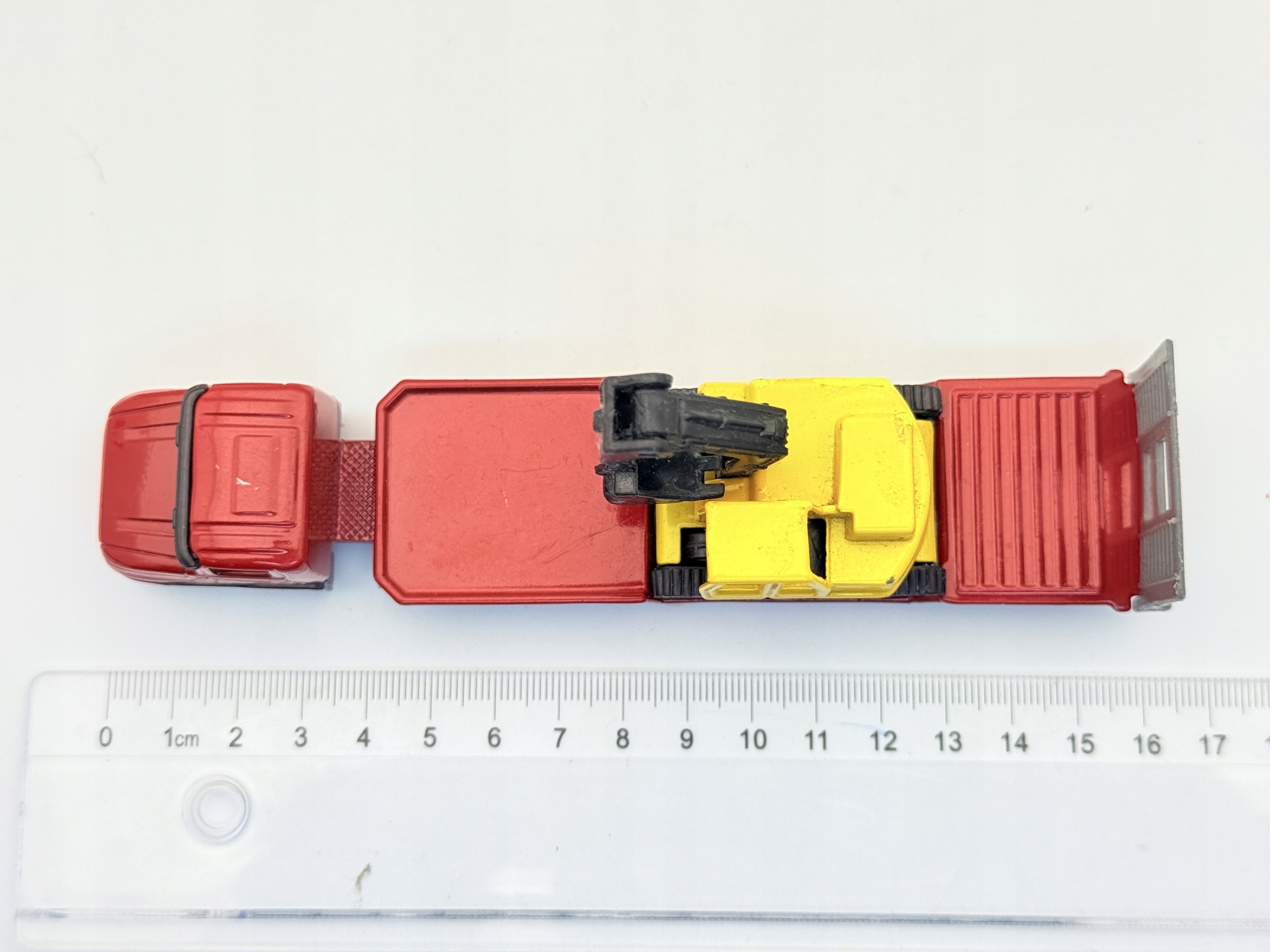 ГРУЗОВИК С ПРИЦЕПОМ И ЭКСКАВАТОРОМ, Моча, Пружины, Литье под давлением, Красный, 1:87