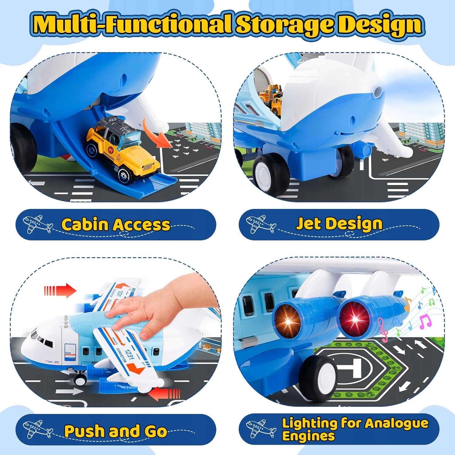 ✅ грузовой самолет + 12 автомобилей Mat Light Airport Sounds Подарок для детей h1> ⭐ Полный комплект для бесконечного веселья h2> ⭐ Интеллектуальная кабина с последствием h2> ⭐ Реалистичные функции с огнями и звуками h2> ⭐ Уникальная функция Fog h2> ⭐ идеальный подарок h2>