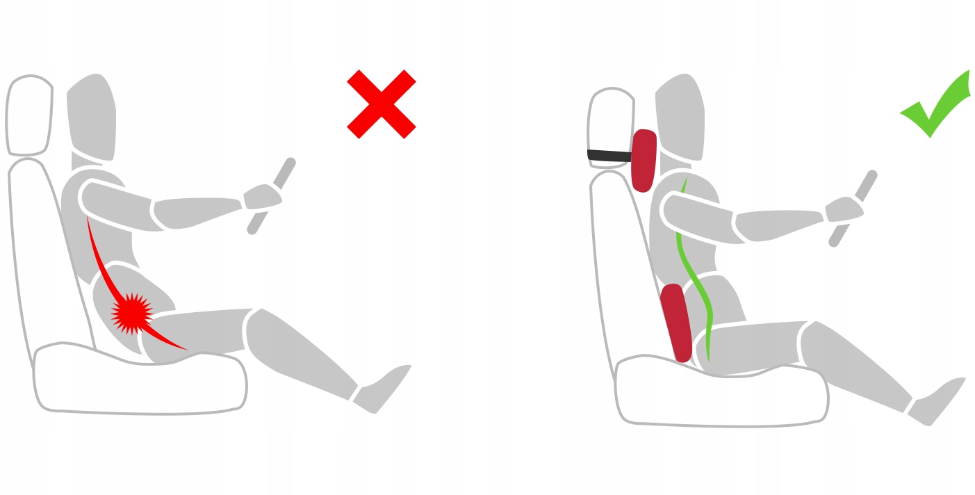 Он прекрасно заполняет пространство между спинкой сиденья и поясницей, благодаря чему спина сохраняет правильное положение во время движения, что приносит ощущение облегчения и расслабления.