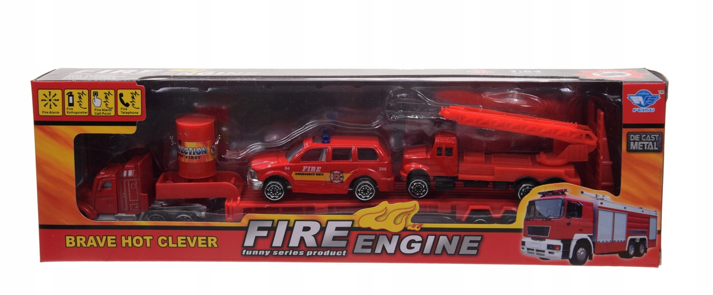 Пожарный прицеп с двумя автомобилями поставляется в четырех вариантах. варианты с разными транспортными средствами – поменьше и покрупнее. Игрушка в часть из металла, часть из прочного, качественного материала. пластик.