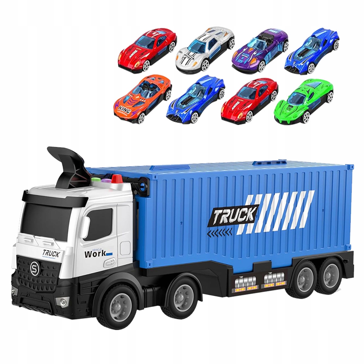 🎁Игрушки-грузовики для мальчиков, портативный грузовик с 8 металлическими гоночными машинками, набор игрушек на день рождения для детей от 3 лет (синий)🎁