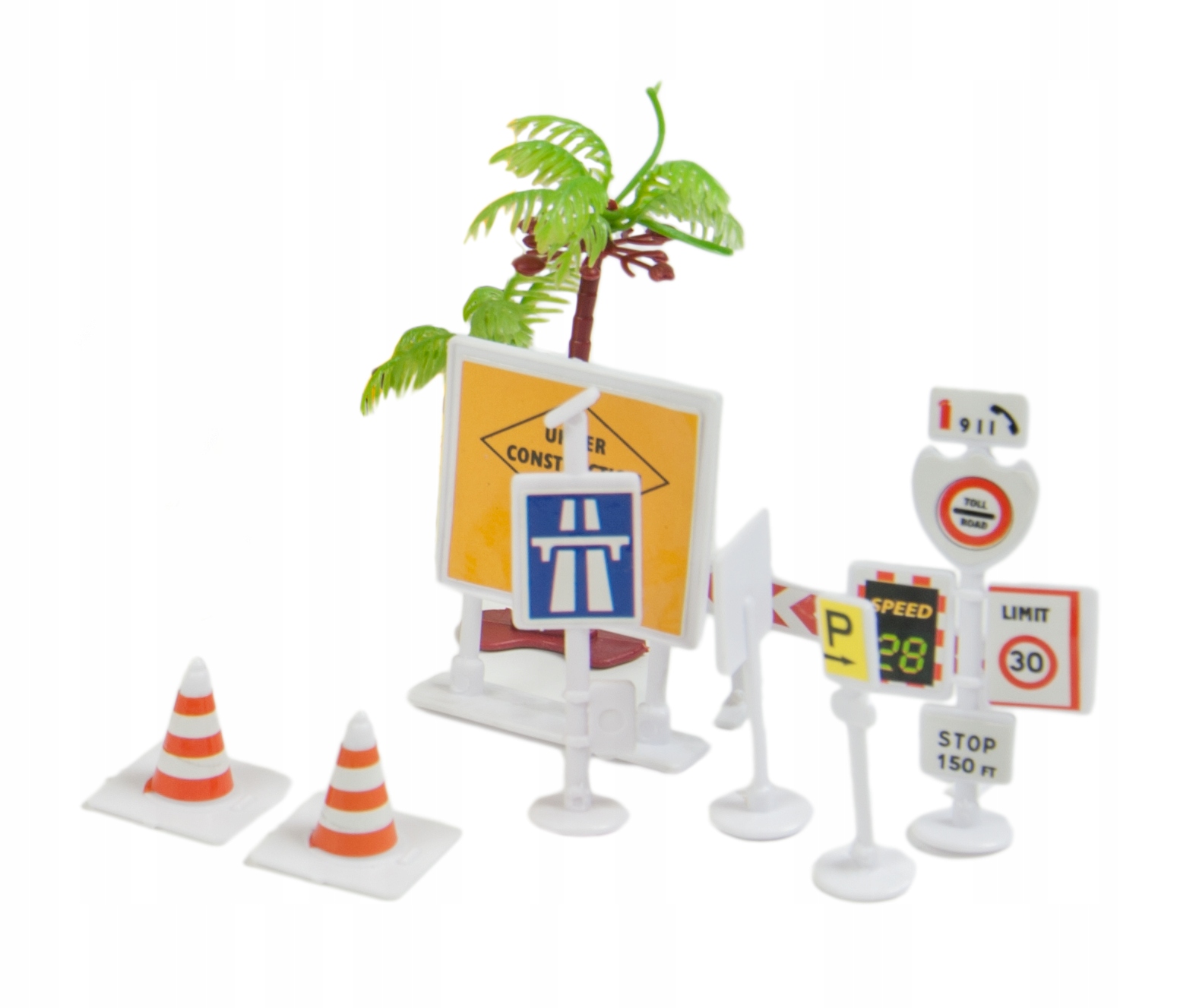 Помимо транспортных средств, в каждый набор входят дорожные знаки, которые добавляют разнообразия в игру с машинками.