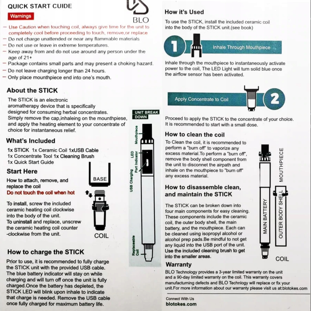 Портативный STICK BLO для нанесения мазков — это электронное устройство для ароматерапии. Он специально разработан для травяных концентратов.