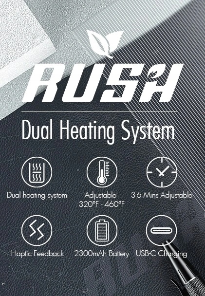 Характеристики портативного вапорайзера Fenix RUSH - Новая интеллектуальная технология обогрева Intellisense. - Система отопления DHS = конвекционно-кондукционная (гибридная) - Полностью регулируемый температурный диапазон: 320–460 °F / 160–240 °C. - Литий-ионный аккумулятор емкостью 2300 мАч. - Двусторонний экран (реагирует на положение испарителя) - Вибрирует, чтобы вы знали, когда он готов к использованию - Двойная система охлаждения - Зарядка через USB-C - Увеличенная камера для сухих трав по сравнению с предшественниками. - Цинковый корпус