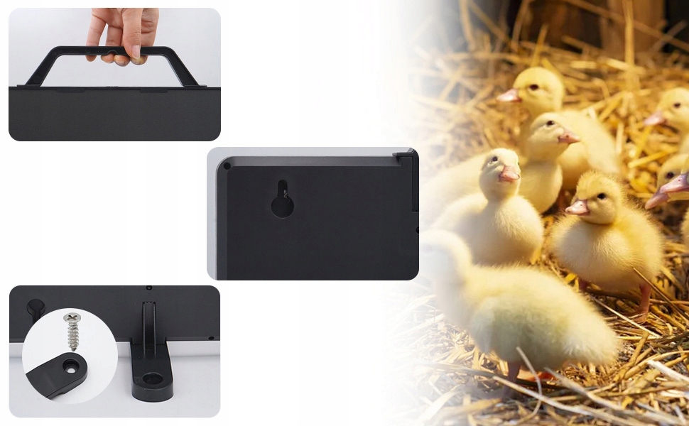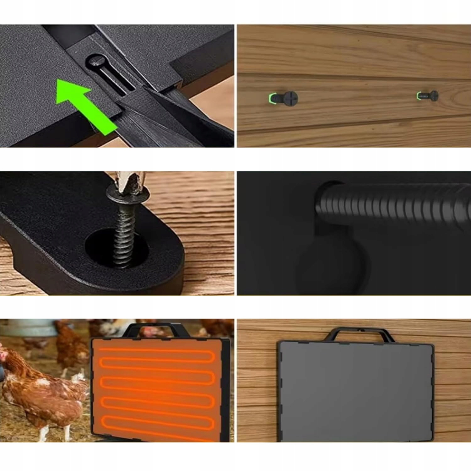 Нагреватель для курятника оснащен удобной ручкой и крепежными отверстиями, что позволяет легко закрепить его на стене. Его можно закрепить на кронштейне или прямо на стене, экономя ценное пространство.