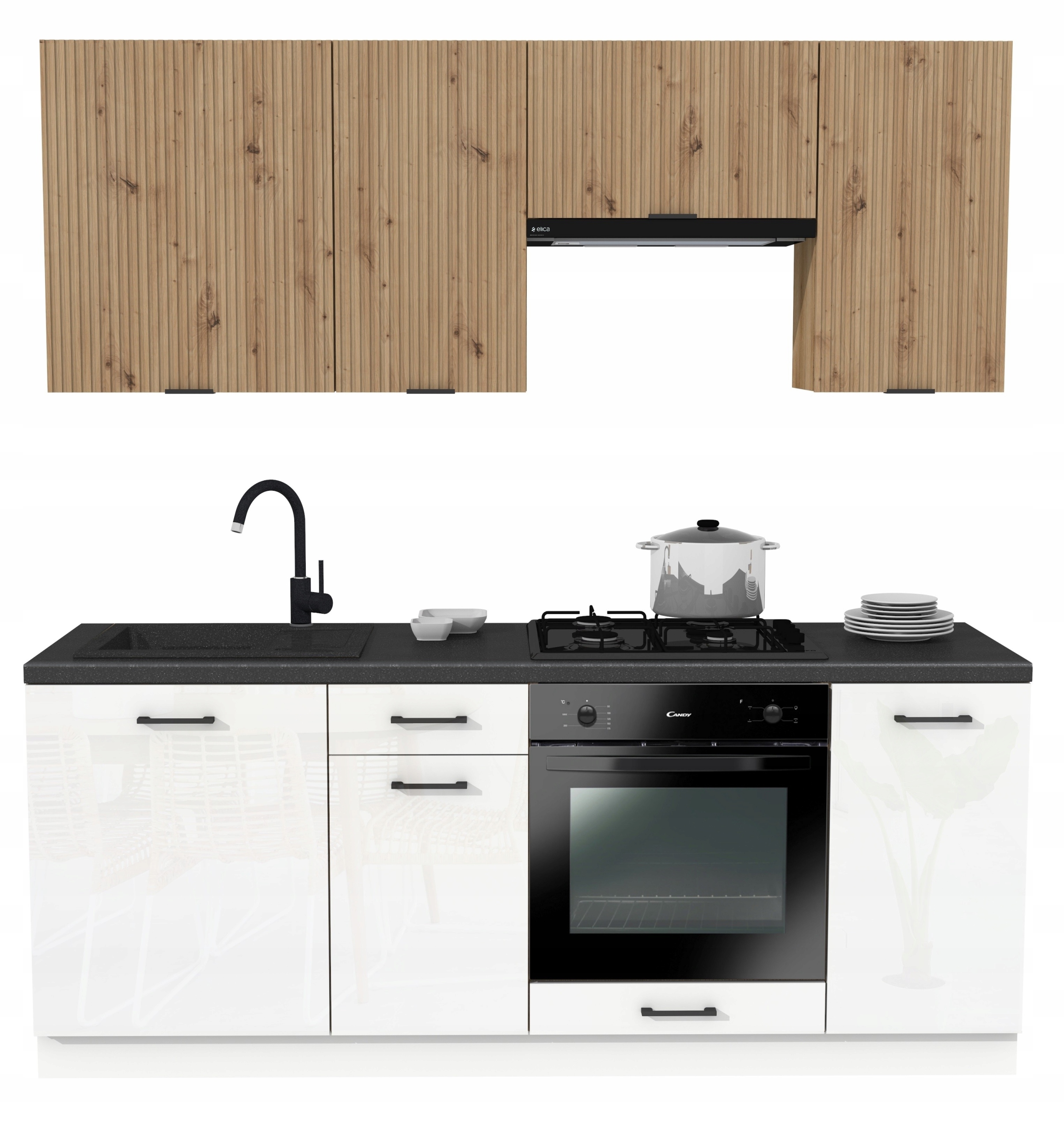 Комплект кухонной мебели шириной 200 см — идеальное решение для небольших жилых помещений, например квартир-студий.
