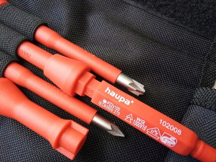 - Haupa - Система Vario с взаимозаменяемыми, изолированными играми. Все отвертки проверяются индивидуально, гарантируя безопасную работу под напряжением до 1000 В, гарантируя претензии некоторое прикрепление в проверенной 2-компонентной ручке. Применение подвижного капота позволяет использовать инструмент в качестве отвертки для электроники. Эта новая, практическая система используется для поддержки всех, обычно используемых профилей.