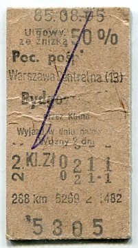 ВАРШАВА - БИДГОЩ :: Залізничний квиток PKP: 1985 р
