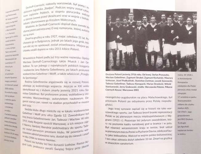 Это также своего рода спортивный путеводитель по Варшаве. Короче говоря, Стефан Щеплек представляет «все» места Варшавы, связанные со спортом, мимо которых часто проходят не только жители столицы, не зная их истории. Помимо интересного контента, издание содержит множество архивных фотографий, сканов документов и статей в прессе, а также старые планы спортивных объектов Варшавы. Это первый из трёх томов, запланированных автором на эту тему.