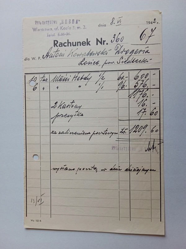 ВАРШАВА ŁOSICE HEBDA 1942 R 0686 D1