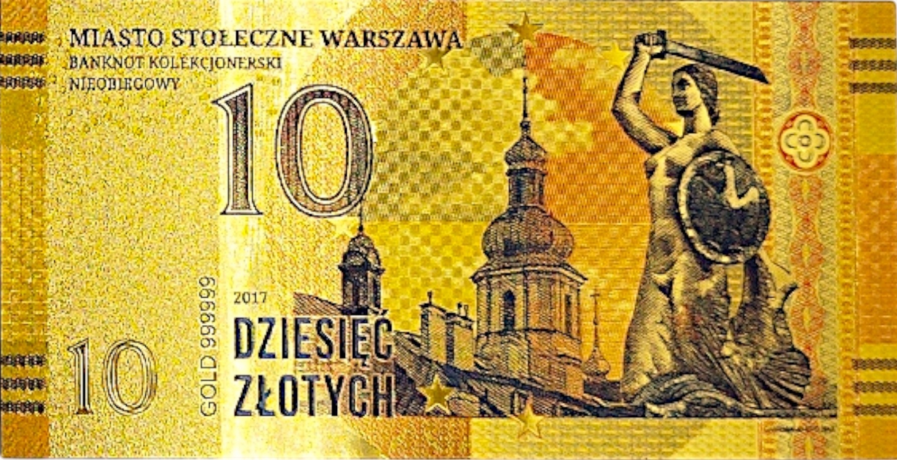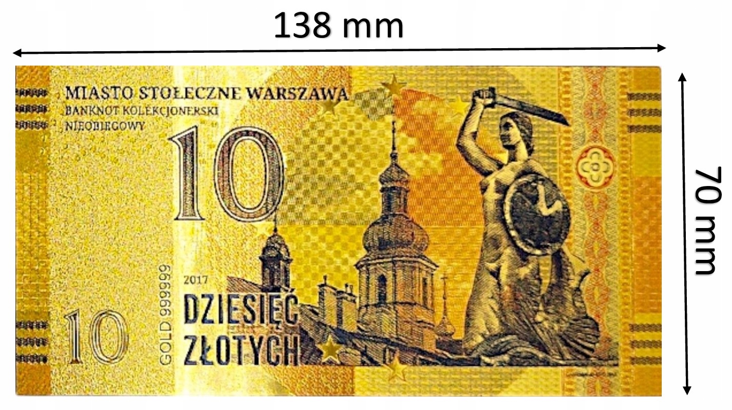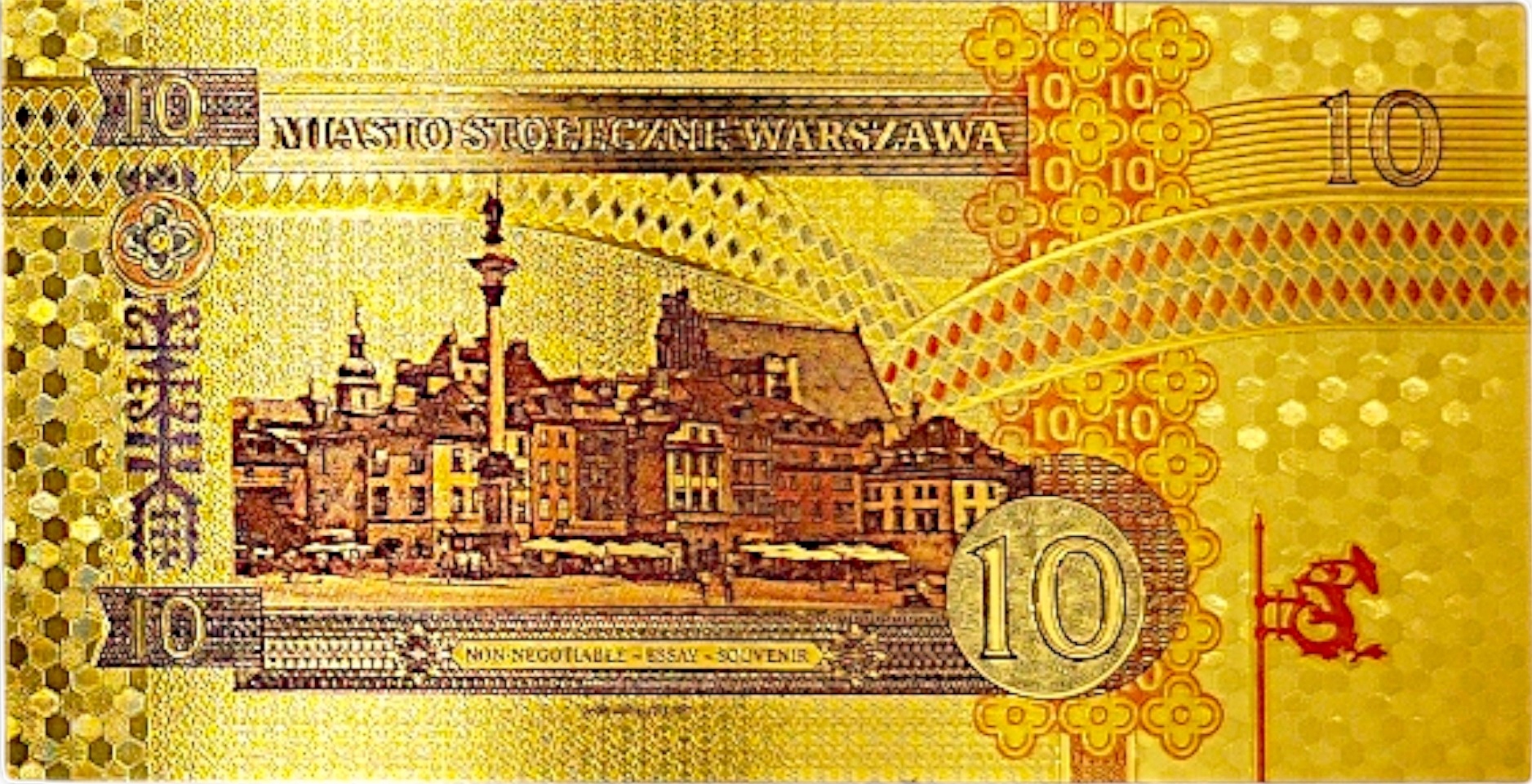 ВАРШАВСКАЯ ПОЗОЛОЧЕННАЯ БАНКНОТА серии «ВАРШАВСКИЕ ГОРОДА»