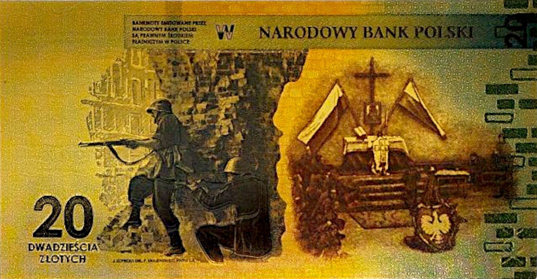 80-ЛЕТИЕ ВАРШАВСКОГО ВОССТАНИЯ ПОЗОЛОЧЕННАЯ БАНКНОТА ИЗ ПВХ