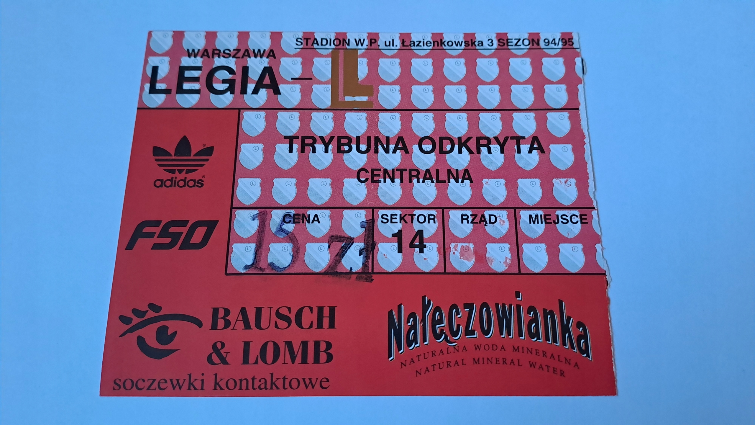 ВАРШАВСЬКИЙ ЛЕГІОН - СІРКА ТЕРНОПІЛЬСЬКА 15-05-1996 КВИТОК