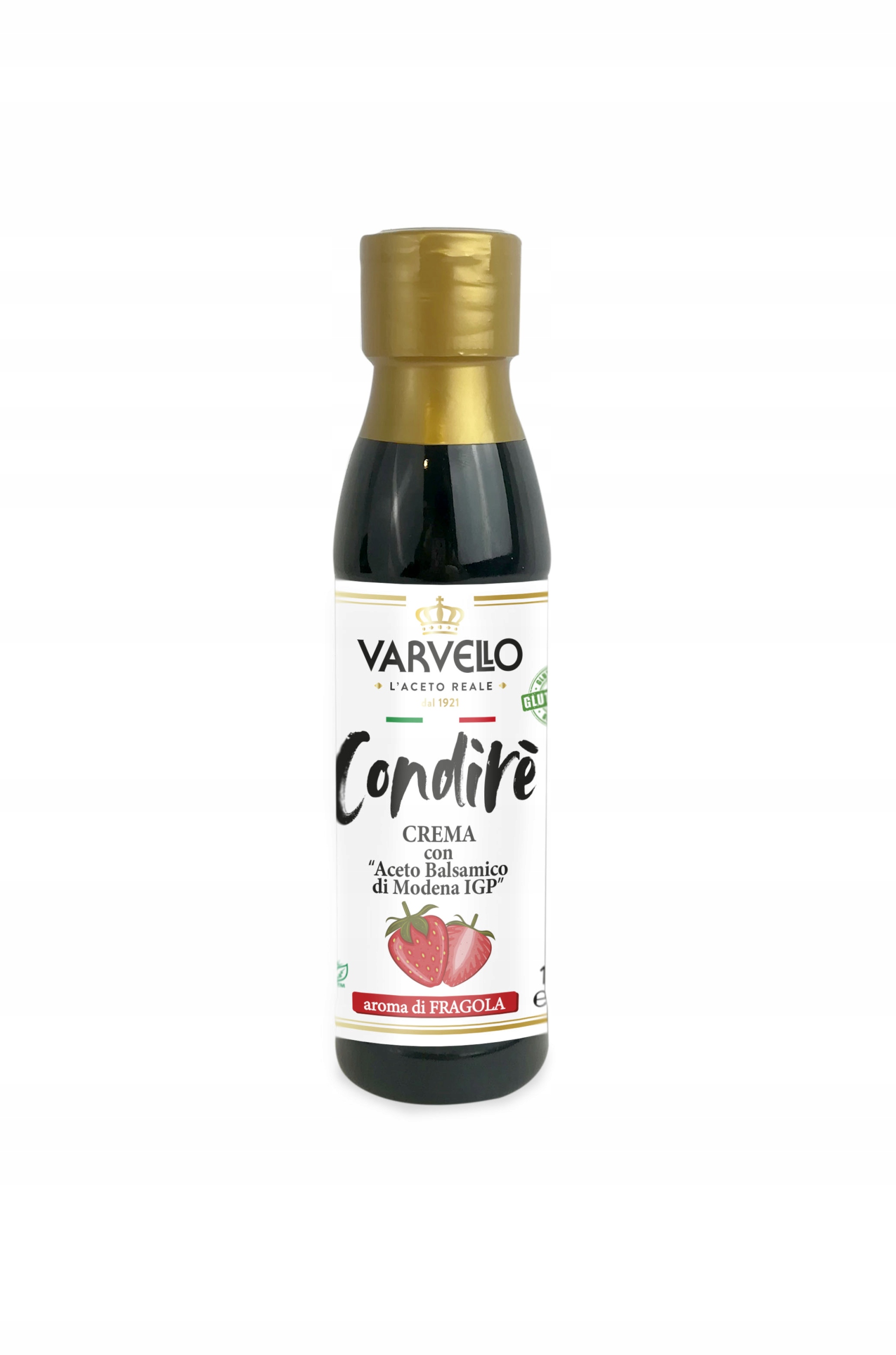Состав:"Aceto Balsamico di Modena IGP" 39% (винный уксус, сусло виноградное концентрированное, красители: Е150d), сусло виноградное концентрированное, глюкозно-фруктозный сироп, вода, загуститель: кукурузный крахмал-ксантановая камедь, ароматизатор клубника