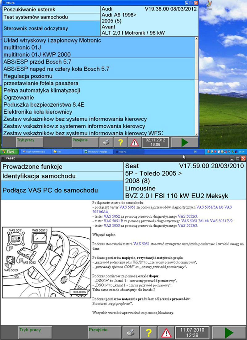 - Каждый раз, когда устанавливается соединение, VAS 6154A синхронизируется с версией приложения, установленного на компьютере.