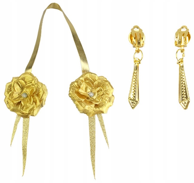 - Золотые заколки для волос - с розочками и шипами, соединенные поясом, как повязка на голову,
