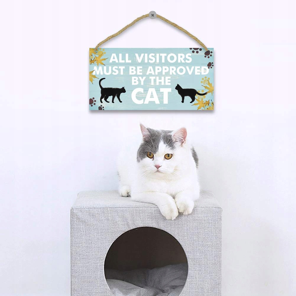 Размеры и содержимое: 4,9 x 9,8 дюймов (12,5 x 25 см). В комплекте: 1 деревянная табличка «Все гости должны получить разрешение от кота» + 1 веревка.