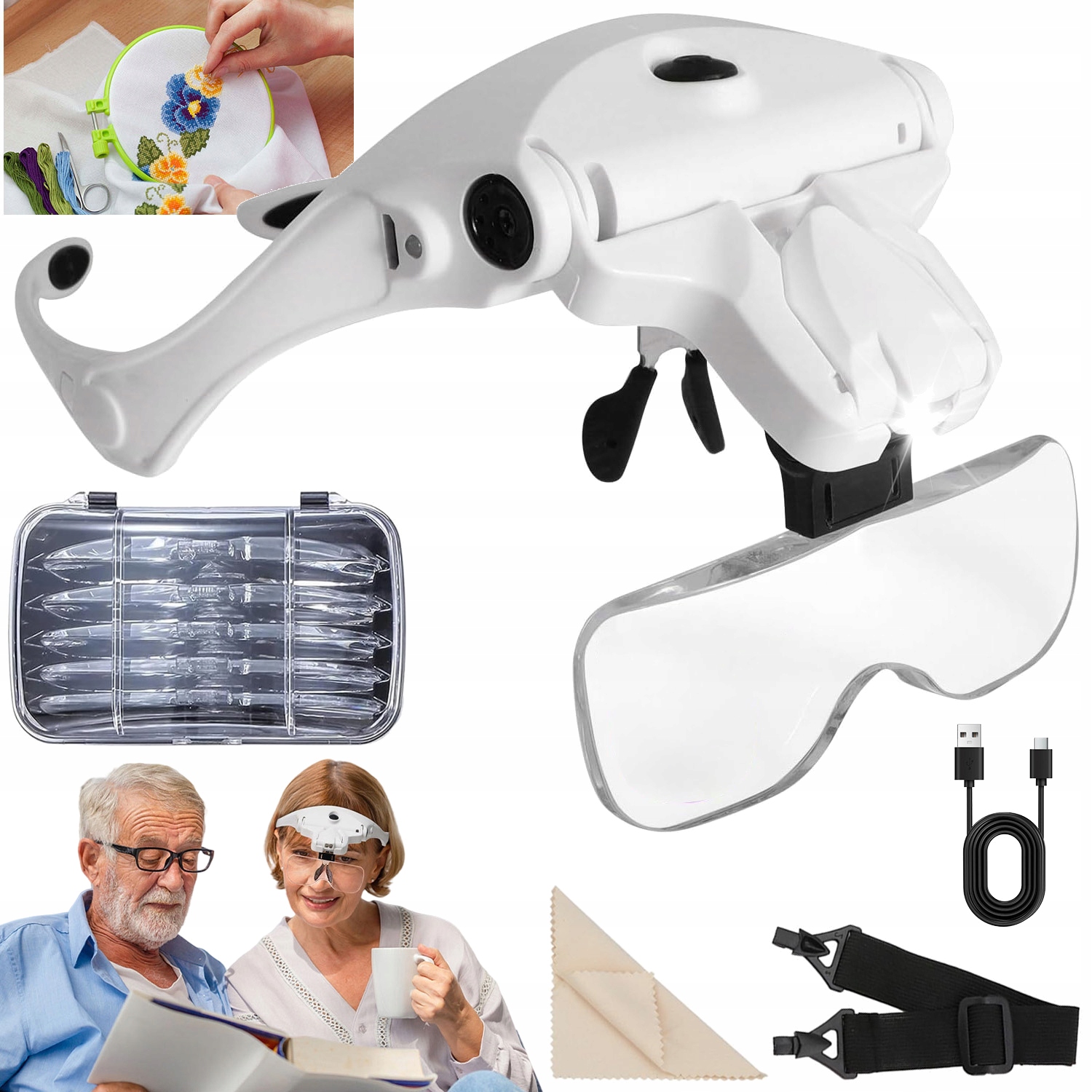 🔎🕶 увеличитель со светодиодным освещением на повязке, заряженном USB, регулируемом, ручным увеличением на повязке с 2 светодиодами, увеличивающимся светом на повязке для ремонта, 5 линзах 1,0x, 1,5x, 2,0x, 2.5x, 3,5x 🔎🕶