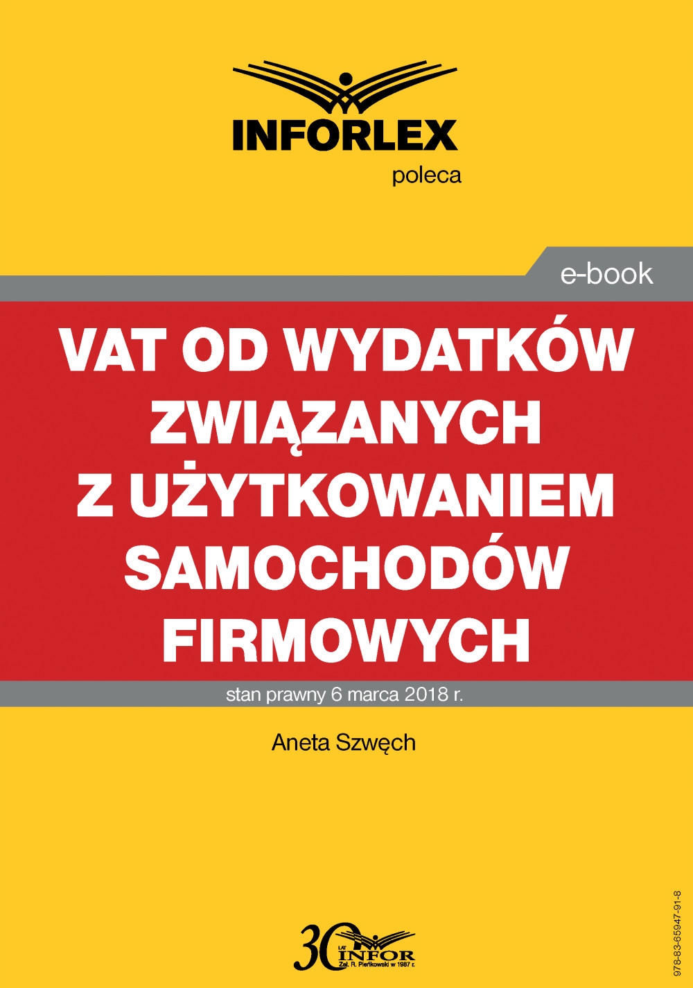 Просматривая «VAT od wydatków związanych z użytkowaniem samochodów firmowych - Aneta Szwę», вы можете быть уверены, что данный товар из каталога «Закон, администрация» будет доставлен из Польши и проверен на целостность. В цене товара, указанной на сайте, учтена доставка из Польши. Внимание!!! Товары для Евросоюза, согласно законодательству стран Евросоюза, могут отличаться упаковкой или наполнением.