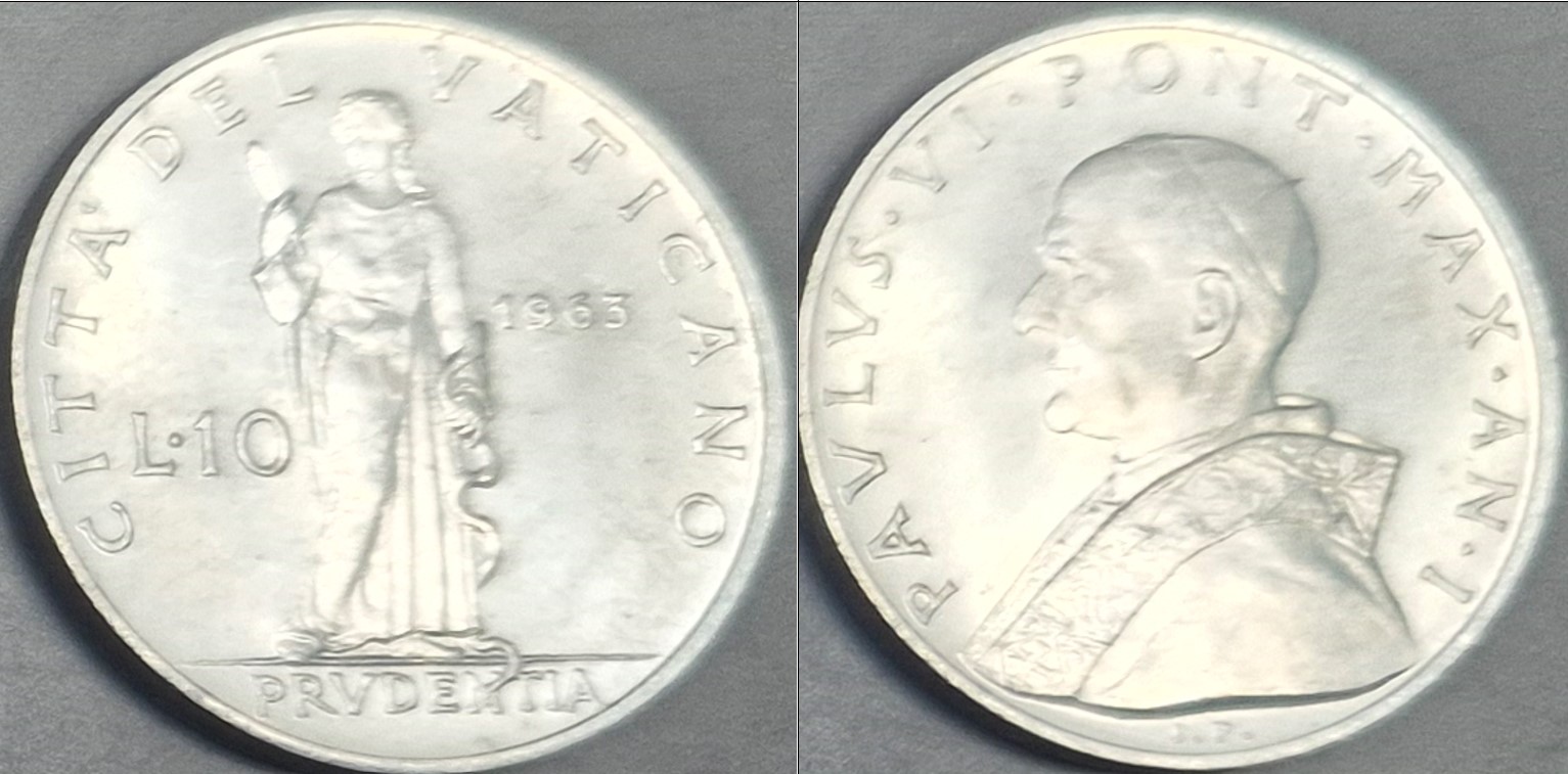 Ватикан 10 LiRów 1963 KM 79 Paul VI