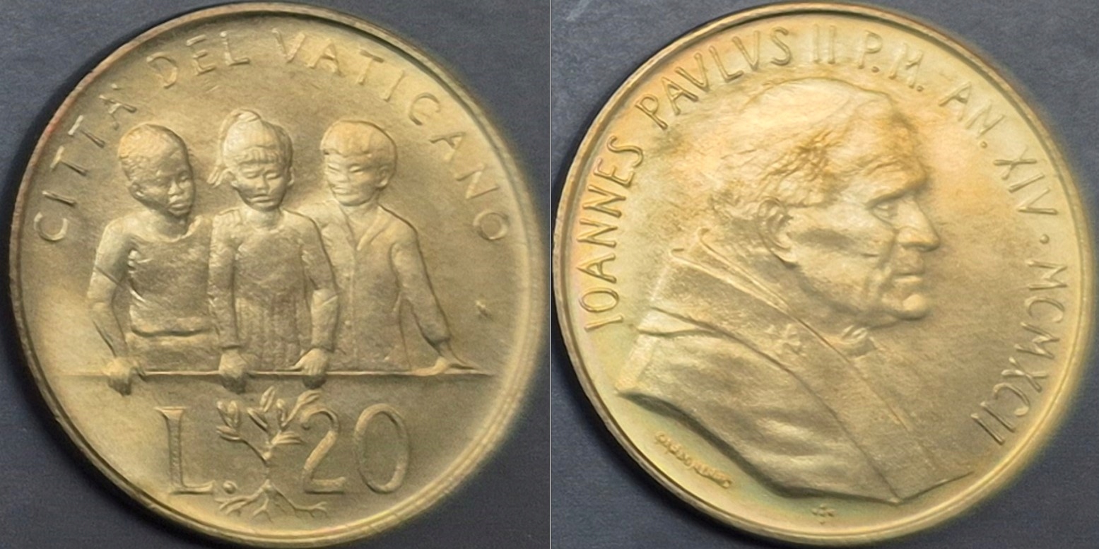 Vatican 20 Lirów 1992 Pope John Paul II Minticza