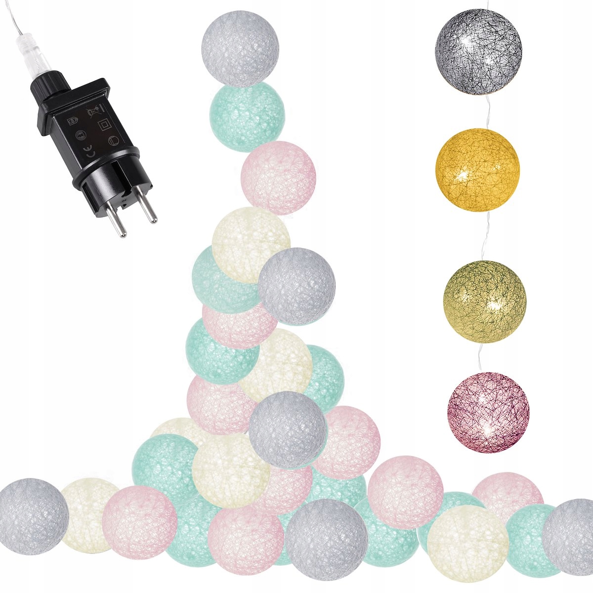 ВАТНІ КУЛЬКИ ЛАМПИ СВІТЛОВІ КУЛІ 50 СВІТЛОДІОДІВ ЕЛЕКТРИЧНА ГІРЛЯНДА СВІТИТЬСЯ ЛАНЦЮЖОК