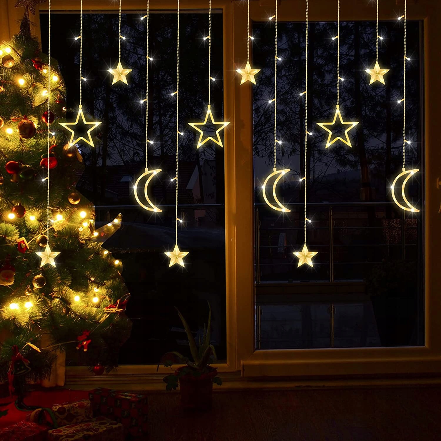 ЗВЕЗДЫ И ЛУНА - ФЕНОМЕНАЛЬНАЯ ОКОННАЯ ГИРЛЯНД 3м, 8 программ, Елочные гирлянды