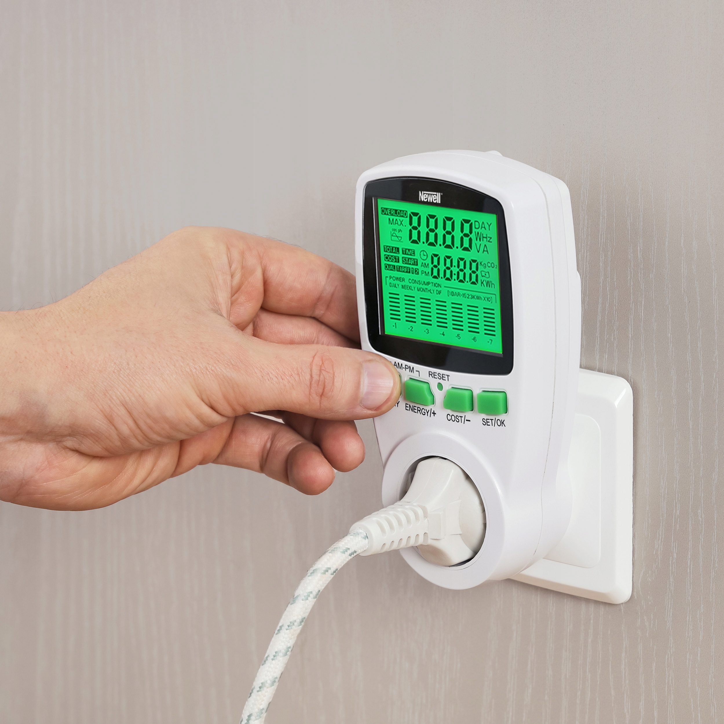 Ваттметр Newell — это небольшое устройство, которое точно измеряет, сколько электроэнергии потребляет электрооборудование в вашем доме. Точные измерения обеспечат больший контроль над расходами, помогая вам эффективно сократить ваши счета. На экране с подсветкой устройства вы можете проверить, среди прочего: информация о потребляемом токе, напряжении и мощности подключенного устройства. Одного взгляда на понятный график достаточно, чтобы увидеть, как менялось ваше энергопотребление за последние дни, недели или месяцы. Ваттметр позволит вам рассчитать затраты исходя из 2-х разных тарифов. Это также позволит вам наблюдать, как экономия влияет на снижение выбросов CO2 в окружающую среду.