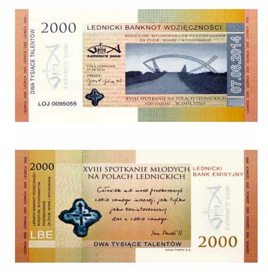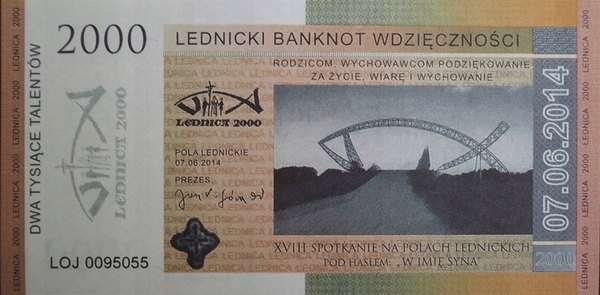 Национальная молодежная встреча. LEDNICA 2014, Банкнота Благодарности