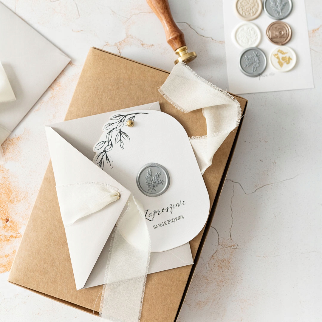 Ваучер, приглашение на сессию с конвертом. Лак и лента