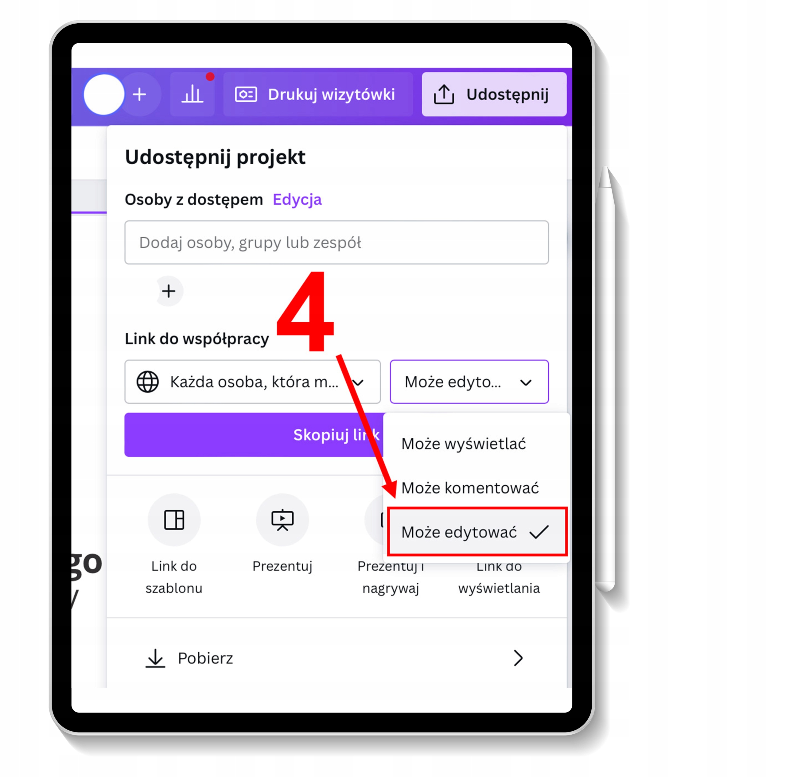 4️⃣ Разверните второй список (справа) и выберите опцию - Можно редактировать