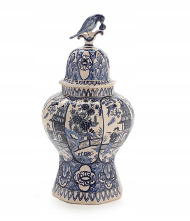 Предлагаемая ваза, вероятно, происходит от фабрики «Де Грикше А» (основана в 1658 году Вутер ван Энхорн), когда заводом владел в 1701-1703 годах Питер Адриенс Кокс. Изделия этого периода отличаются большим изяществом форм, утонченностью рисунка и тонкой каменной росписью.