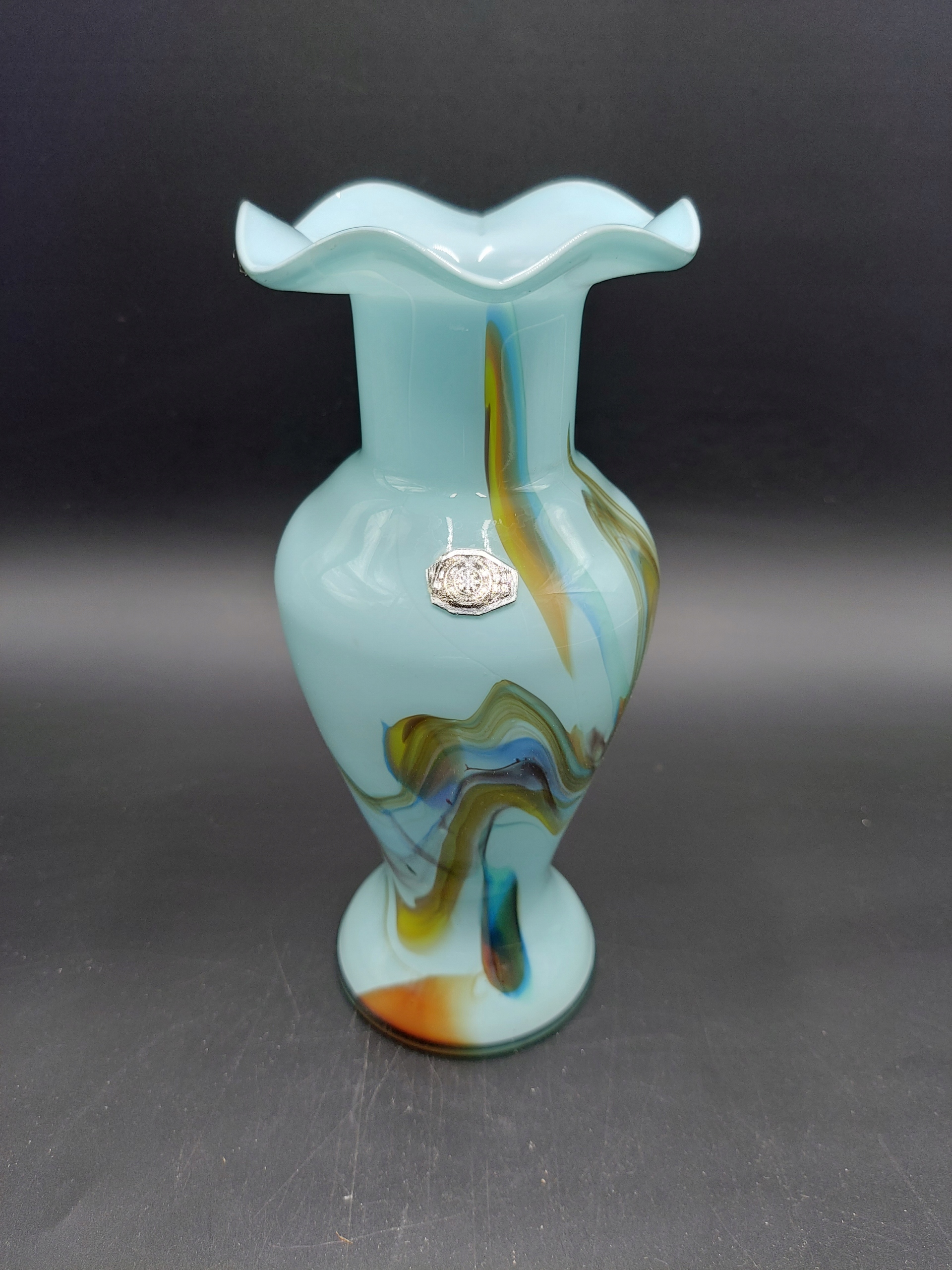 Стеклянная ваза Бохо, голубой опал, Чехия