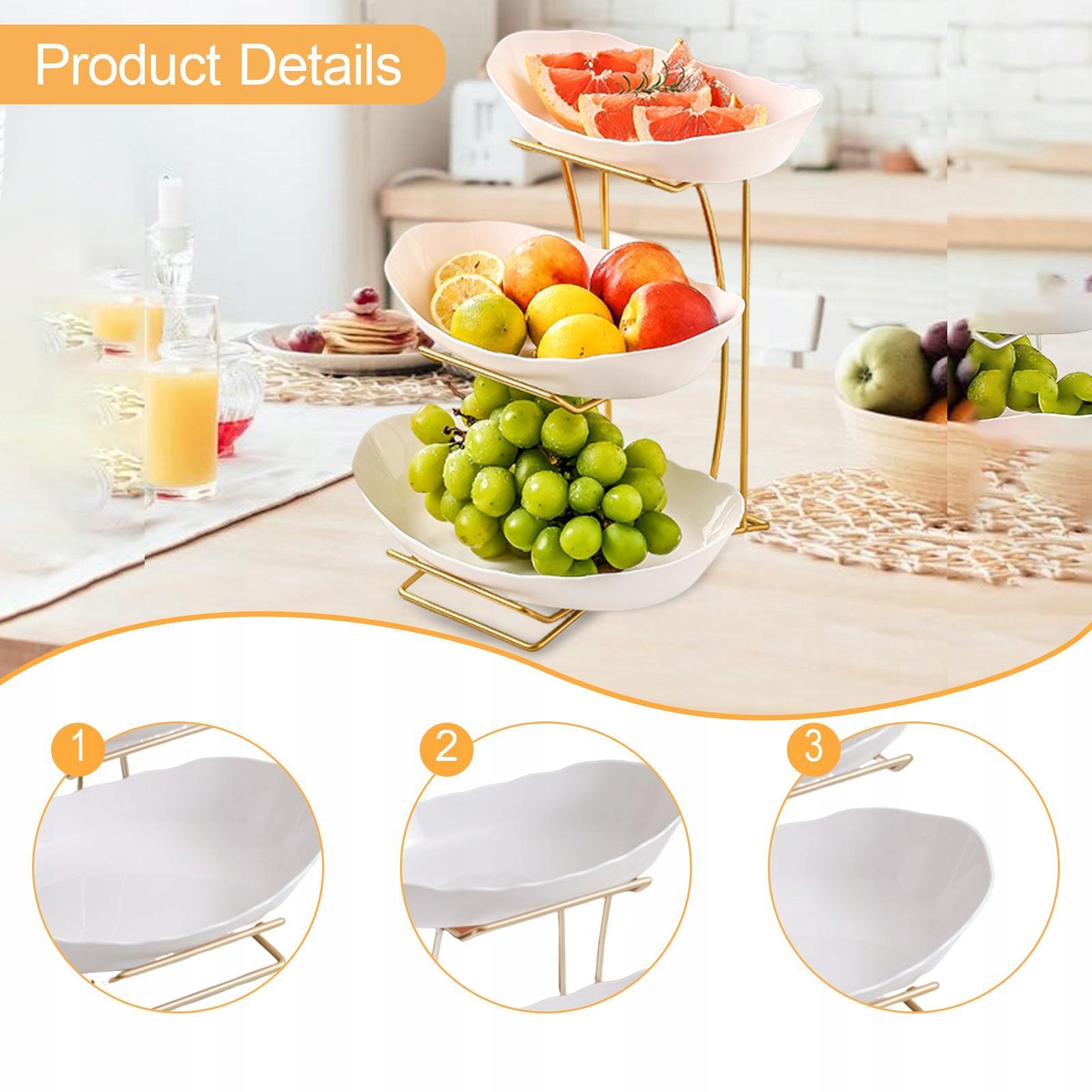 [Полный комплект]: включает одноуровневую подставку для корзины с фруктами, которая украсит ваш дом шикарной эстетикой.