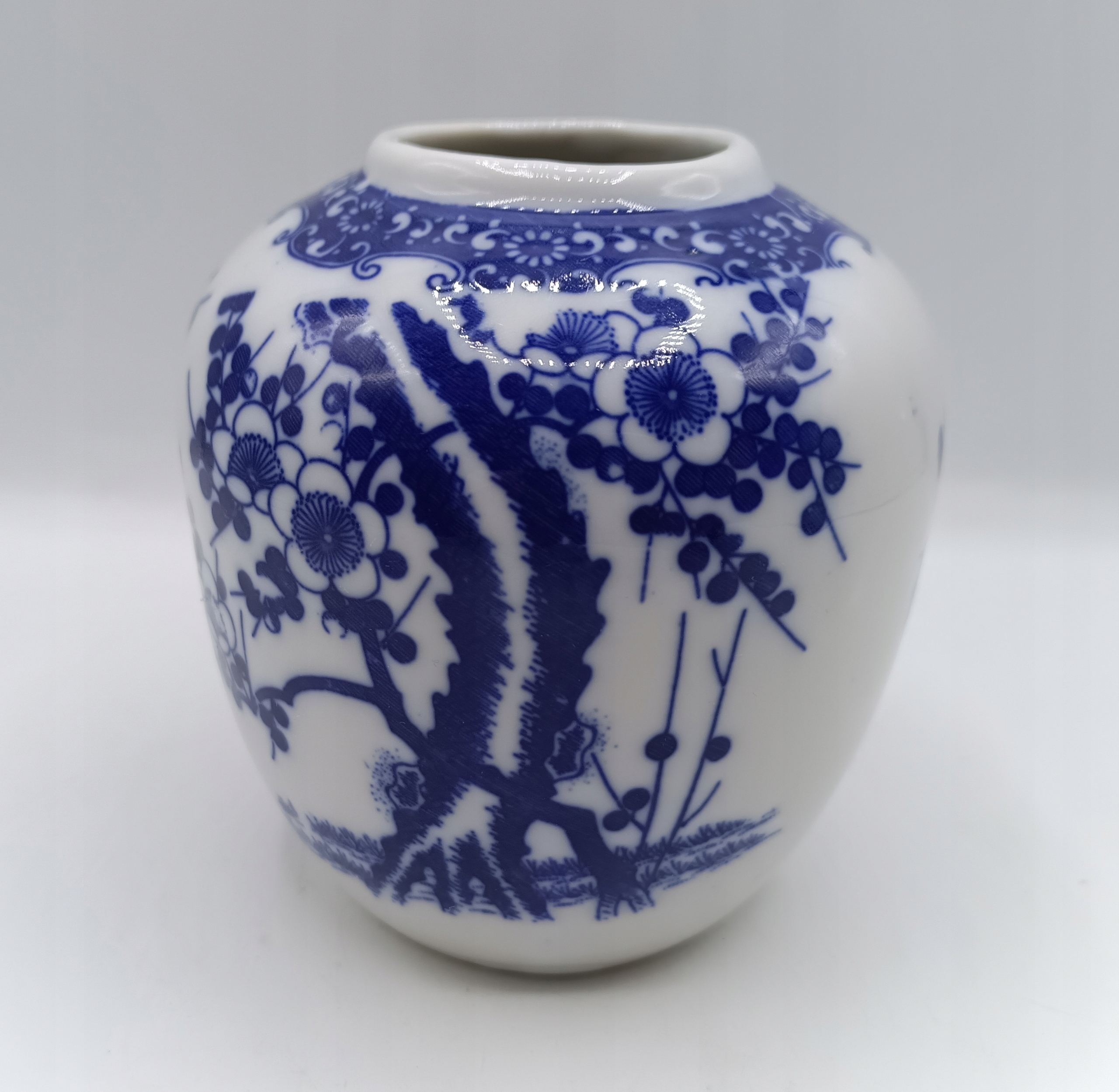 Ваза для цветов - Белая и синяя вишня из японского сада. Фарфор.