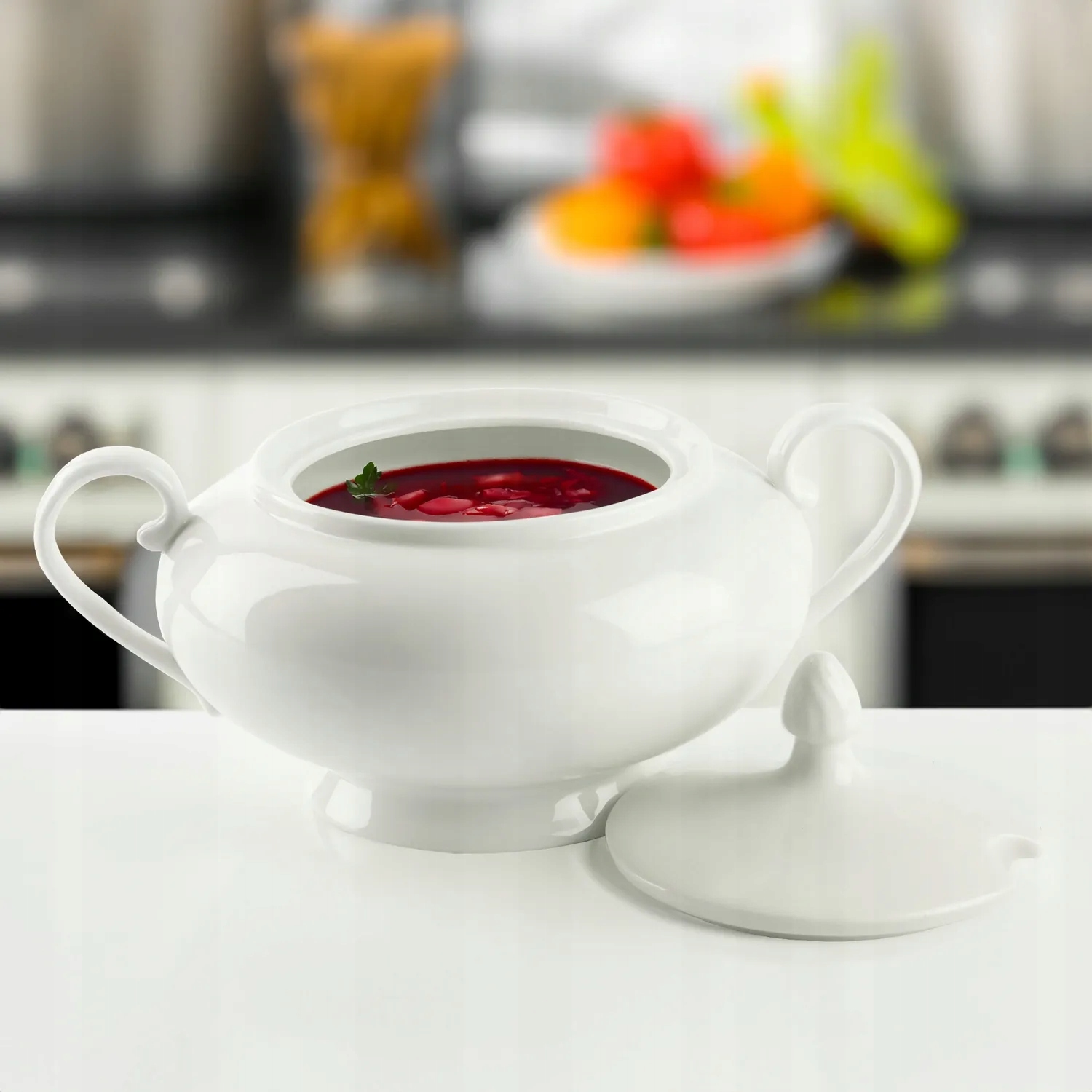 БЕЛАЯ ВАЗА ДЛЯ СУПА 3 Л С КРЫШКОЙ БОРСХАУС БУЛОН ВАЛЬЗА БЕЛЫЙ ФАРФОР