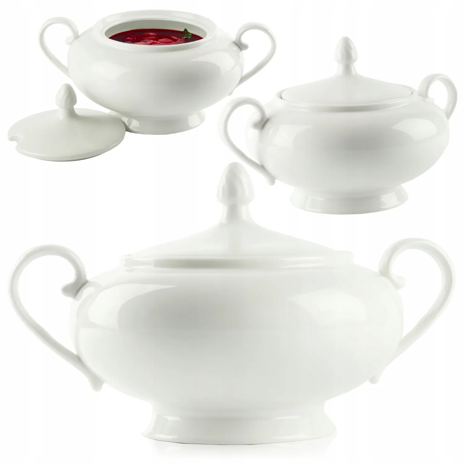 Ваза для супа БЕЛАЯ 3л С КРЫШКОЙ ВАЛЬС ДЛЯ БУЛЬЯ БЕЛЫЙ ФАРФОР