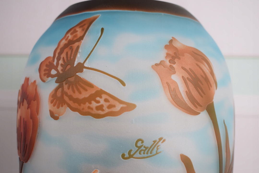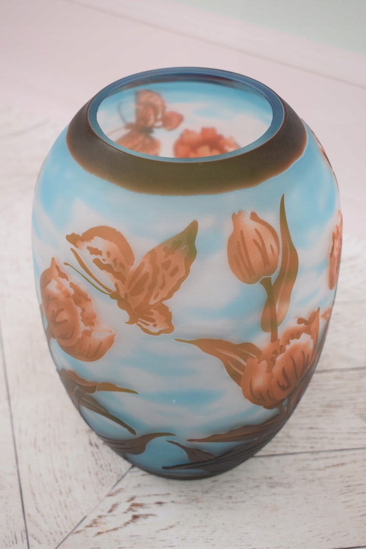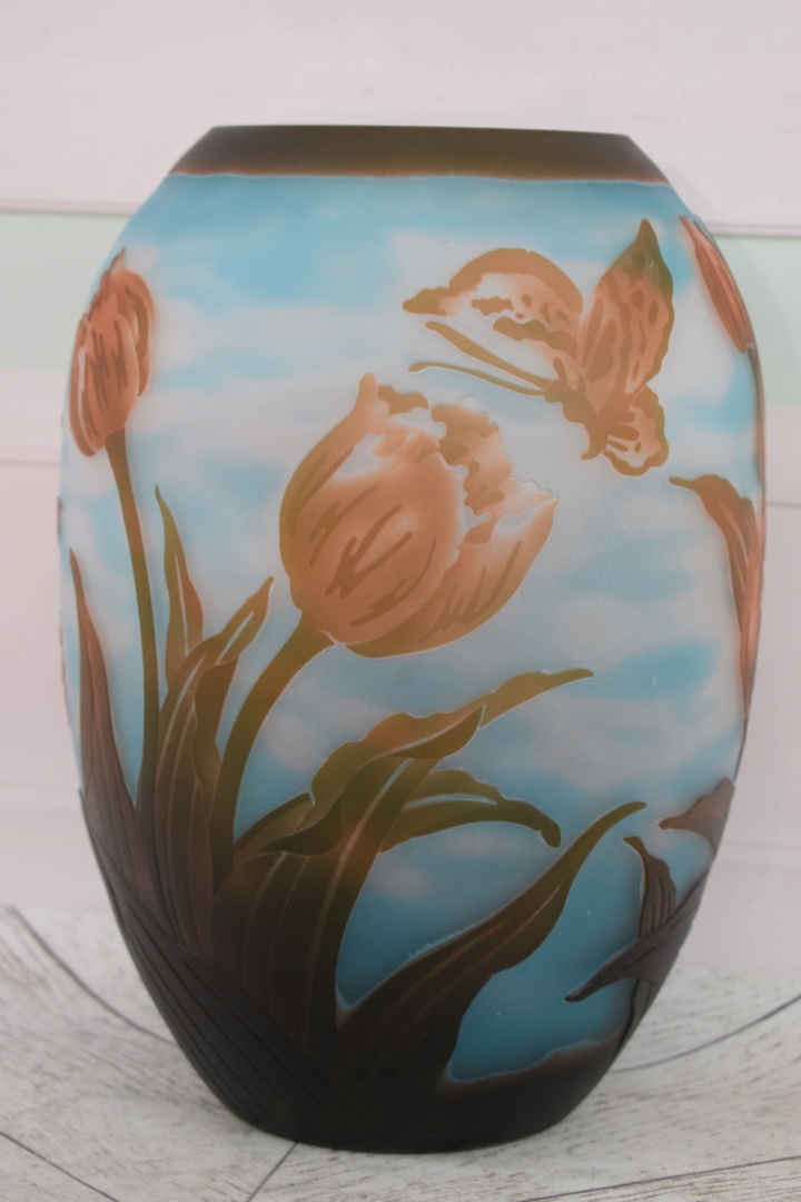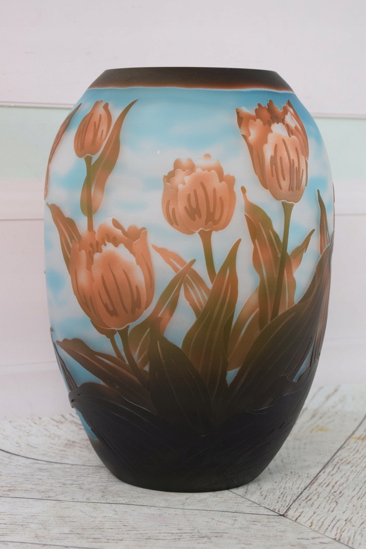 Vase Emile Galle Style - толстое стекло - цветы тюльпанов - подписанный подарок