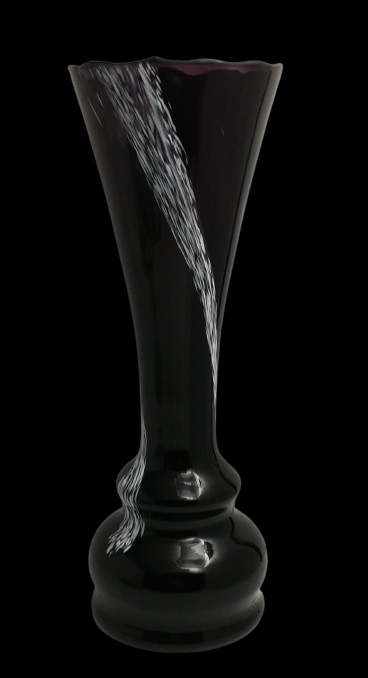 Предметом аукциона/продажи является старинная коллекционная ваза из массового цветного стекла с фиолетовым оттенком, украшенная сверху так называемым оборка времен Польской Народной Республики