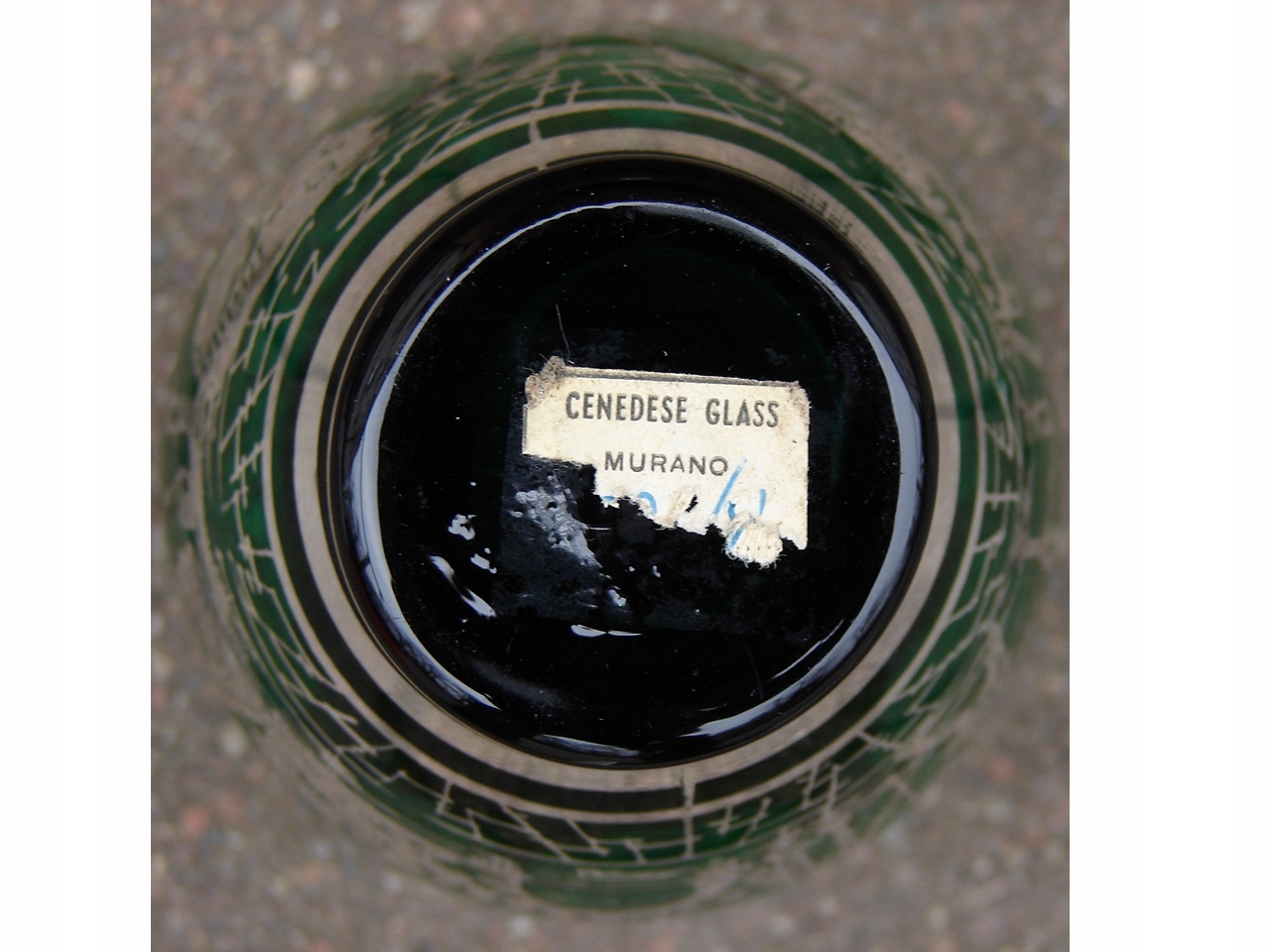 Зеленая стеклянная ваза, украшенная чистым серебряным мурано