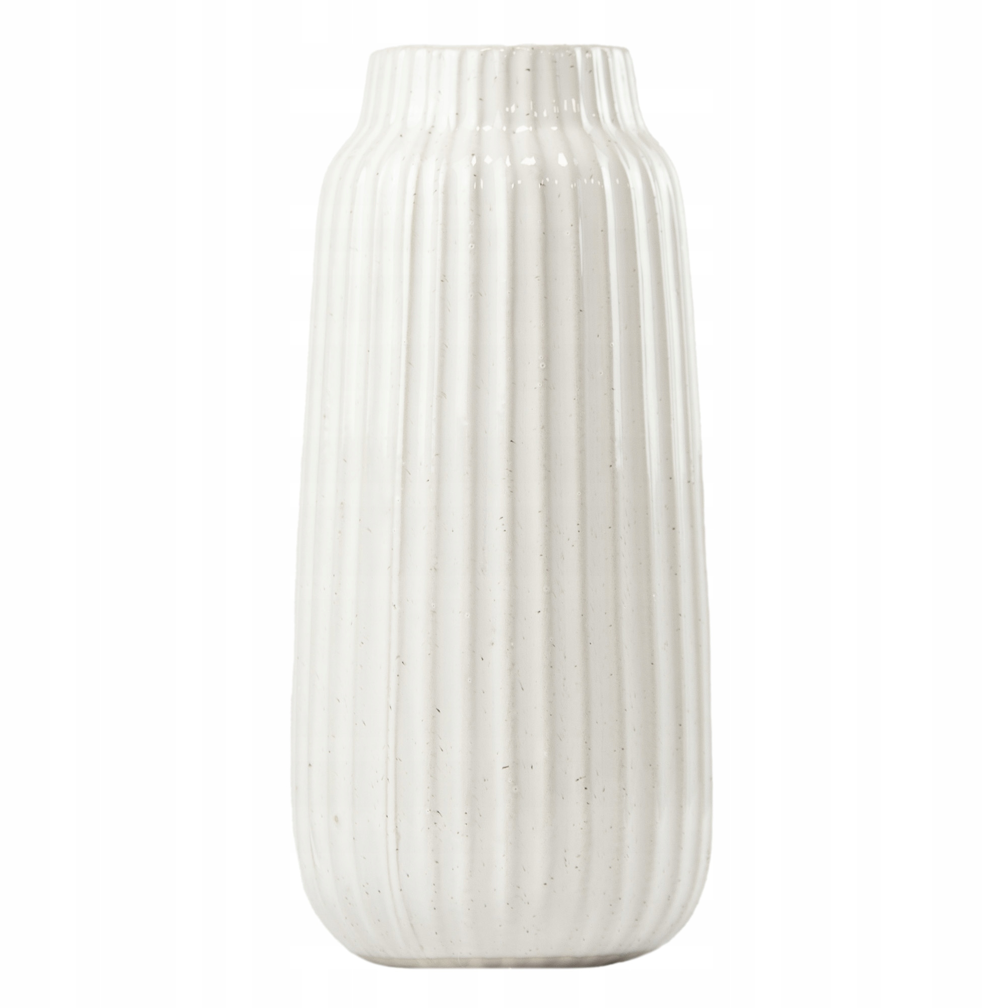 Элегантная белая керамическая ваза с изящным декором и вертикальными бороздками. Идеально подходит для живых и искусственных цветов, являющихся уникальным украшением любого интерьера.