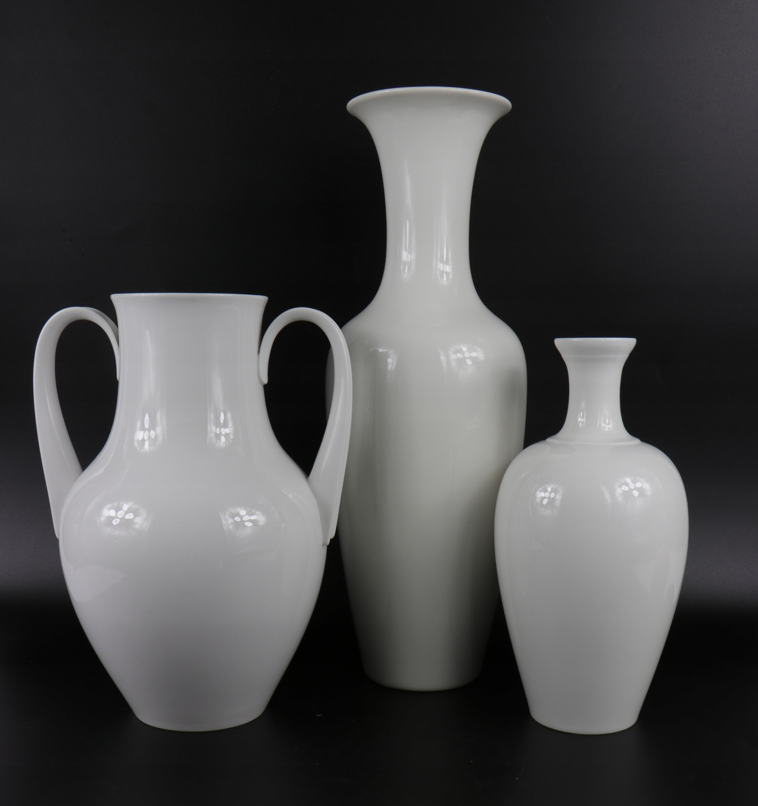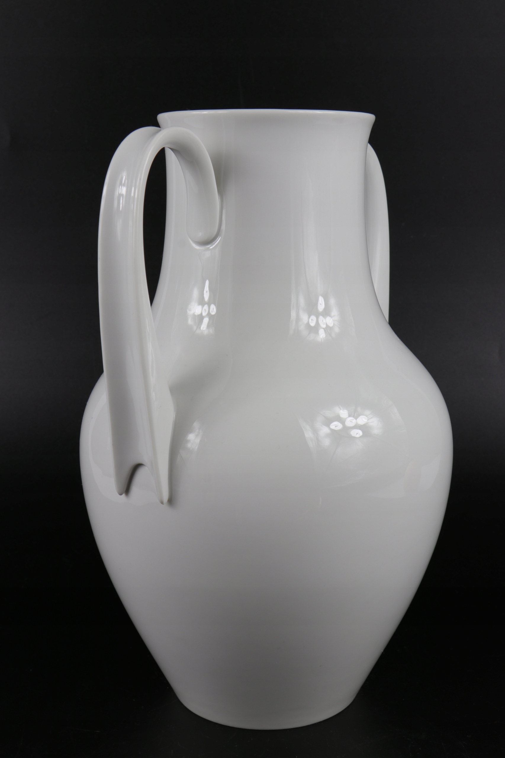 Фарфоровая ваза в форме греческой амфоры со знаком скипетра KPM Berlin. Белый фарфор классической формы. Дизайн Зигмунда Шютца (1906–1998). Прекрасное украшение для любого интерьера от одной из самых известных фарфоровых фабрик, Королевской мануфактуры в Берлине.