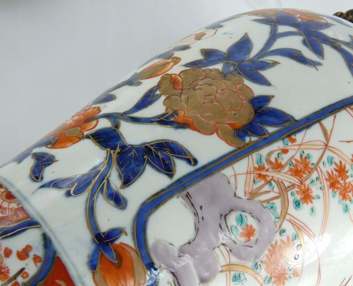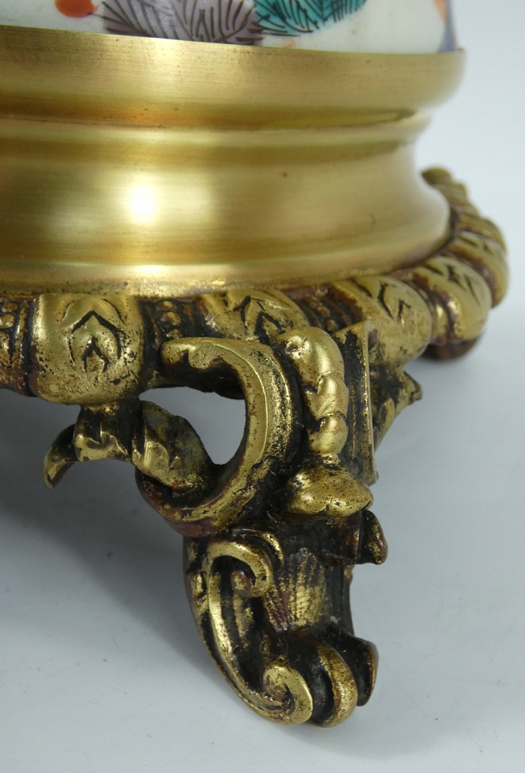 Из латуни, фарфоровый корпус украшен цветочным мотивом.