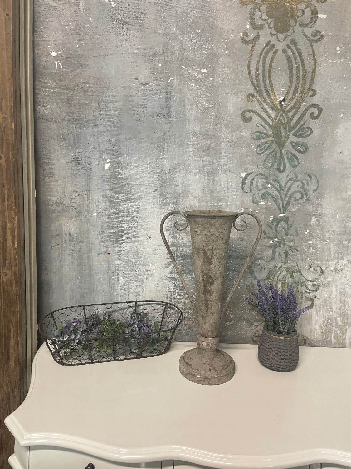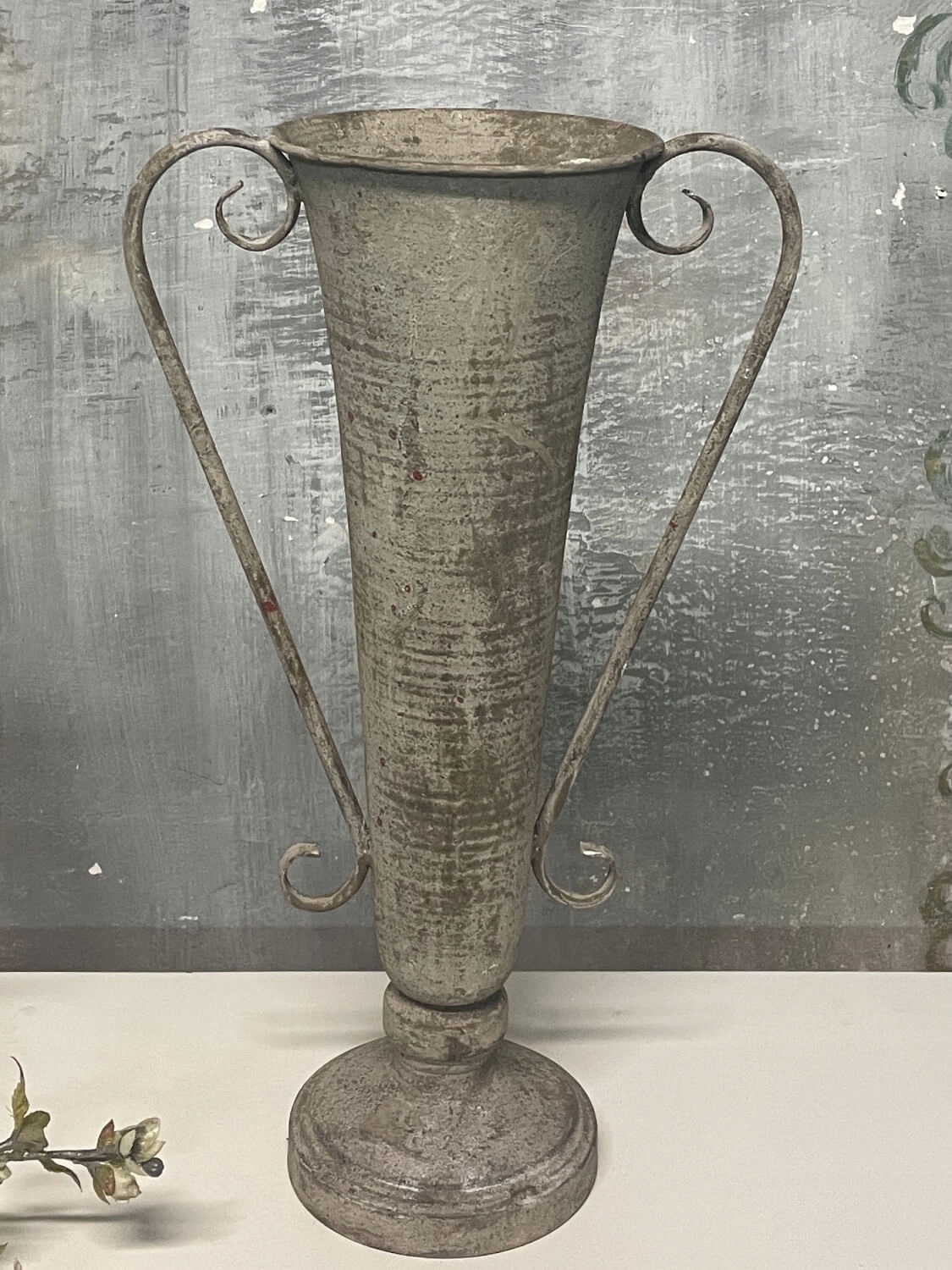 Удивите себя и своих гостей потрясающей стильной серой металлической вазой с патинированными ручками в провансальском стиле.