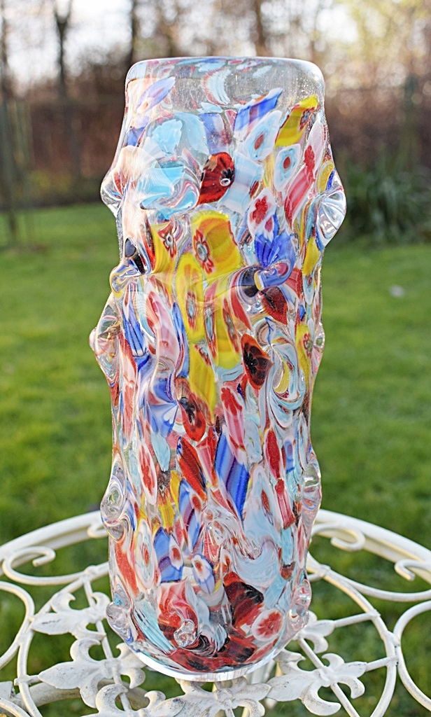 На аукционе представлена красота чудесной вазы. Пожалуйста, обратите особое внимание на точность его изготовления (выполнено в стиле итальянского Мурано) и уникальные цвета.