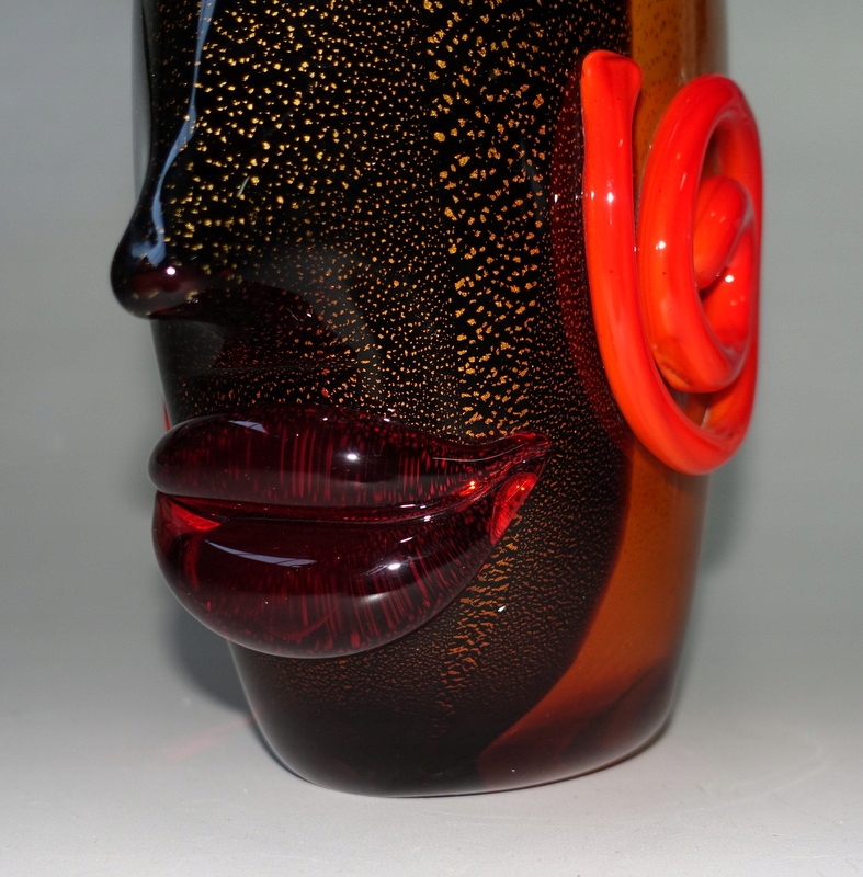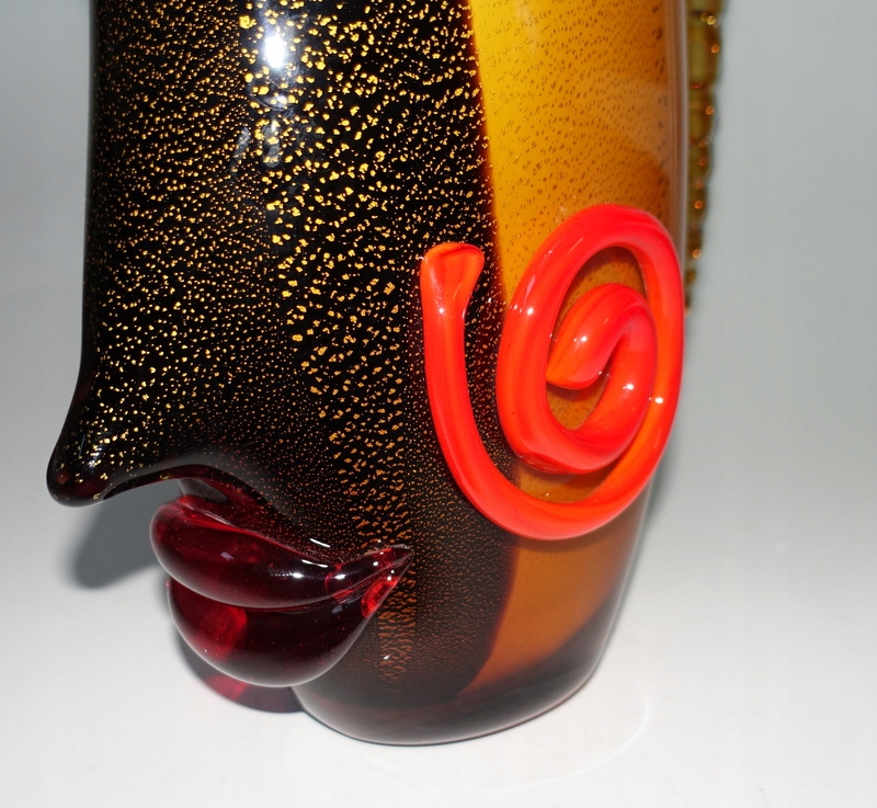 На аукционе представлена красота чудесной вазы в форме лица. Пожалуйста, обратите особое внимание на точность его изготовления (выполнено в итальянском стиле Мурано) и уникальные цвета.